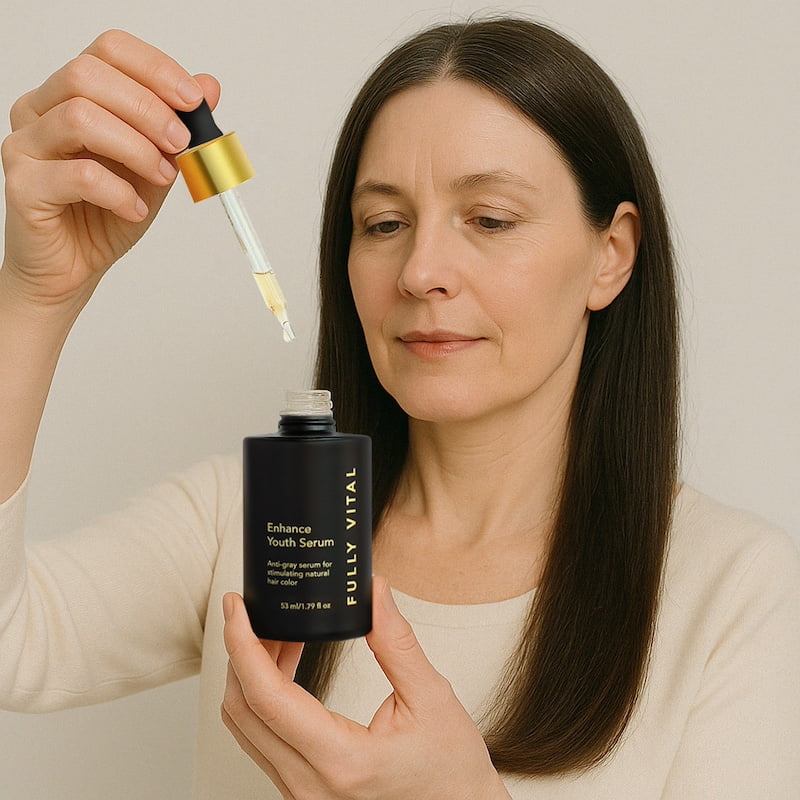 Developed by cellular biologist and anti-aging expert Dr. Sandra Kaufmann, FullyVital's Anti-Gray Serum is the first topical formula to target the cellular pathways that cause premature graying—melanocyte dysfunction, oxidative stress, and follicular nutrient depletion.