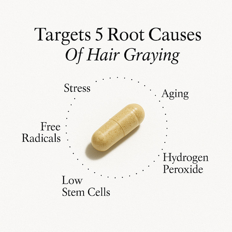 Gray hair has multiple root causes — from oxidative stress and hydrogen peroxide buildup to melanin enzyme decline.