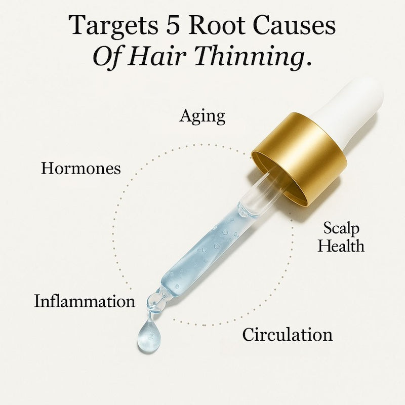 As you age, menopause, hormonal shifts, stress, and other triggers disrupt the hair cycle—leading to thinning.
